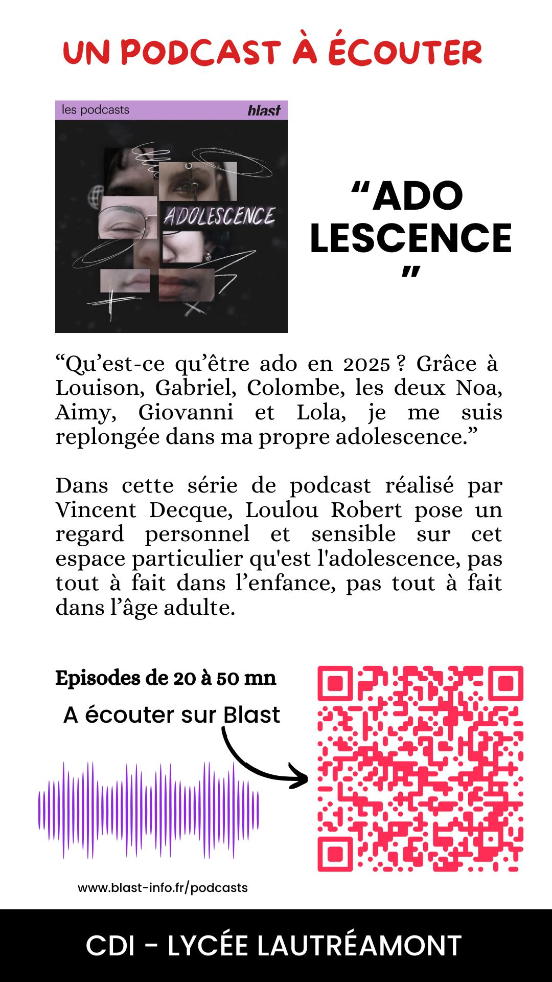 Une exposition réalisée par un élève du Lycée Lautréamont sera présentée au CDI à cette occasion.